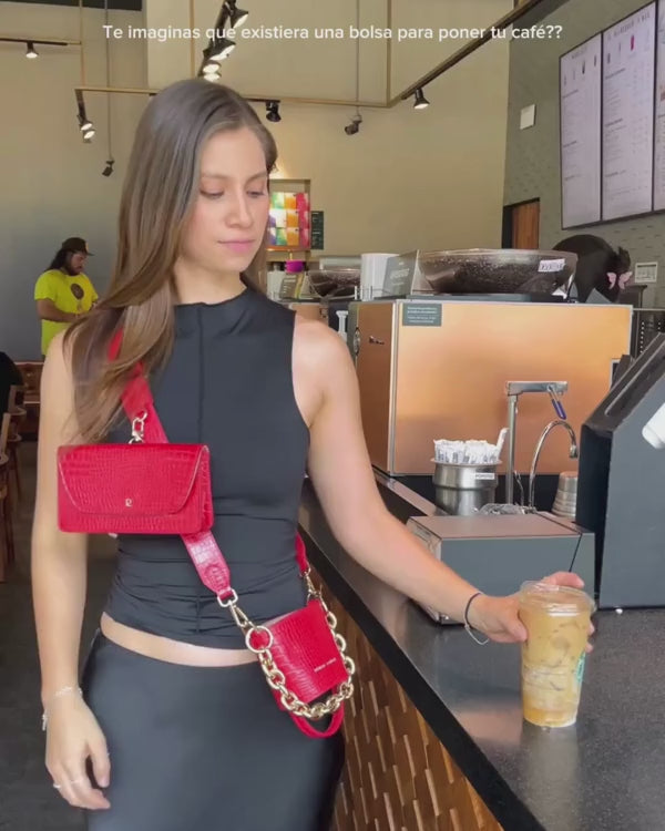 Bolso porta botella , 100% piel genuina, lo puedes usar de 5 diferentes formas gracias a su diseño desmontable; úsalo sin porta celular o ponlo en la parte de abajo, úsalo con la correa corta para ajustarlo en un bolso más grande el portabotella, úsalo solamente con el portacelular como mini bag !